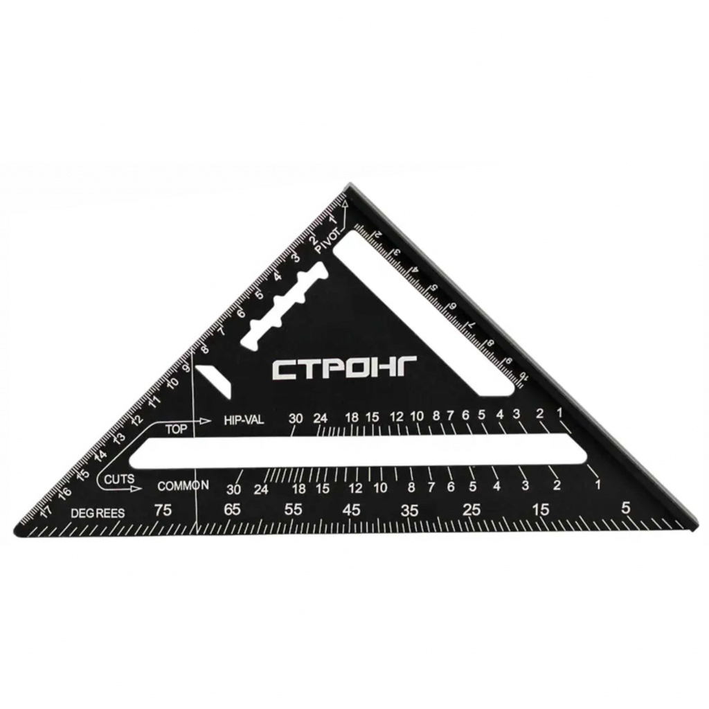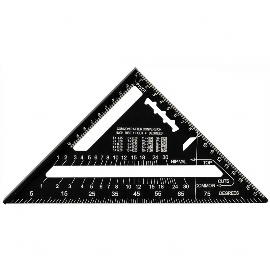 Универсальный кровельный угольник для разметочных работ, может применяться в качестве торцовочного угольника, транспортира, рейсмуса и направляющей для пилы.