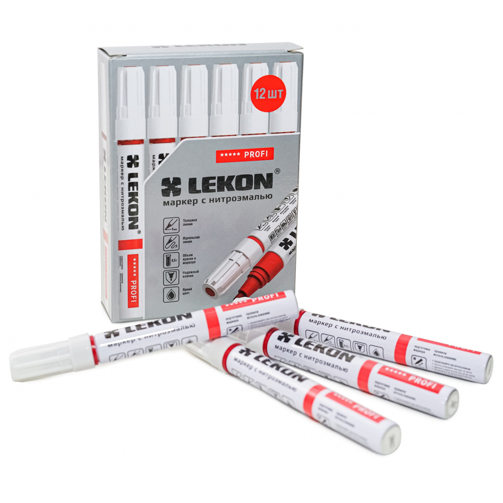 Строительный маркер-краска LEKON серии Profi производства Кореи служит для разметки отделочных материалов, маркировки товаров в торговом зале, маскировки дефектов мебели и бытовой техники.