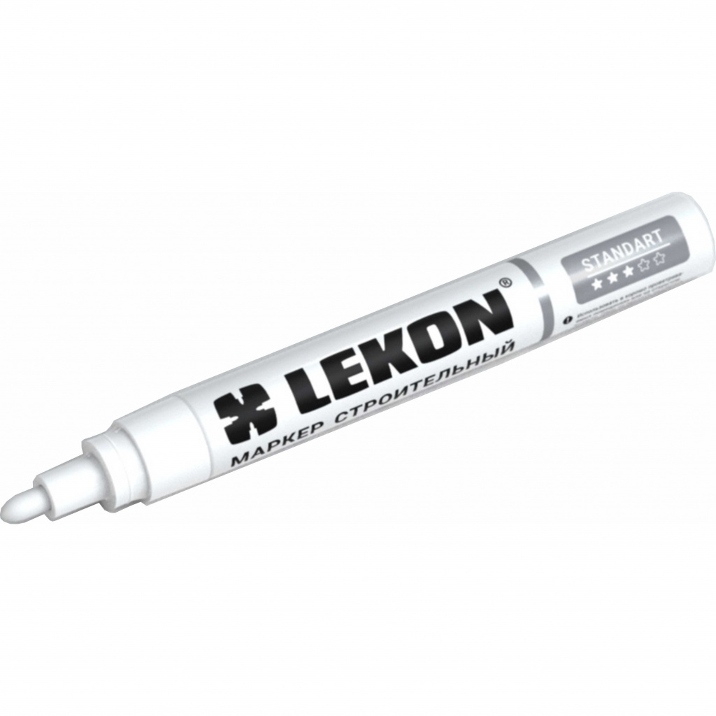 Белый строительный маркер-краска LEKON служит для разметки отделочных материалов, маркировки товаров в торговом зале, маскировки дефектов мебели и бытовой техники.