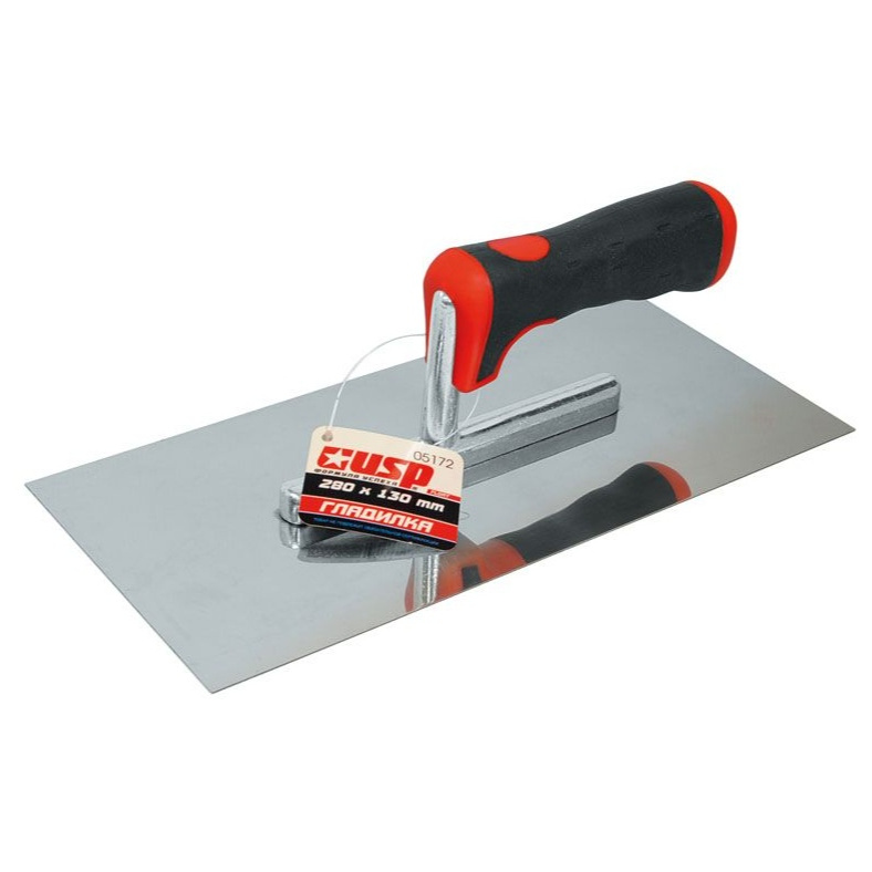 Для равномерного нанесения штукатурного раствора на поверхность. Материал - нержавеющая сталь, мягкая прорезиненная ручка.