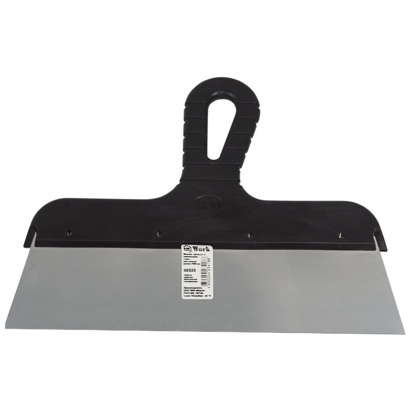 Шпатель фасадный из нержавеющей стали, ручка пластиковая.
