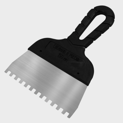 Фасадный шпатель зубчатый предназначен для проведения отделочных работ. Выполнен из нержавеющей стали, ручка пластмассовая.