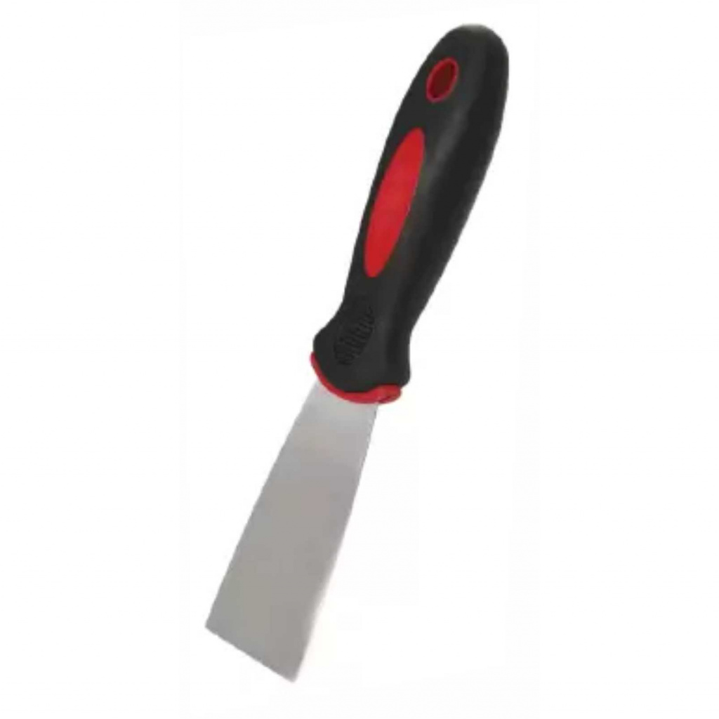 Полотно шпателя изготовлено из нержавеющей стали, материал рукояти - двухкомпонентная.