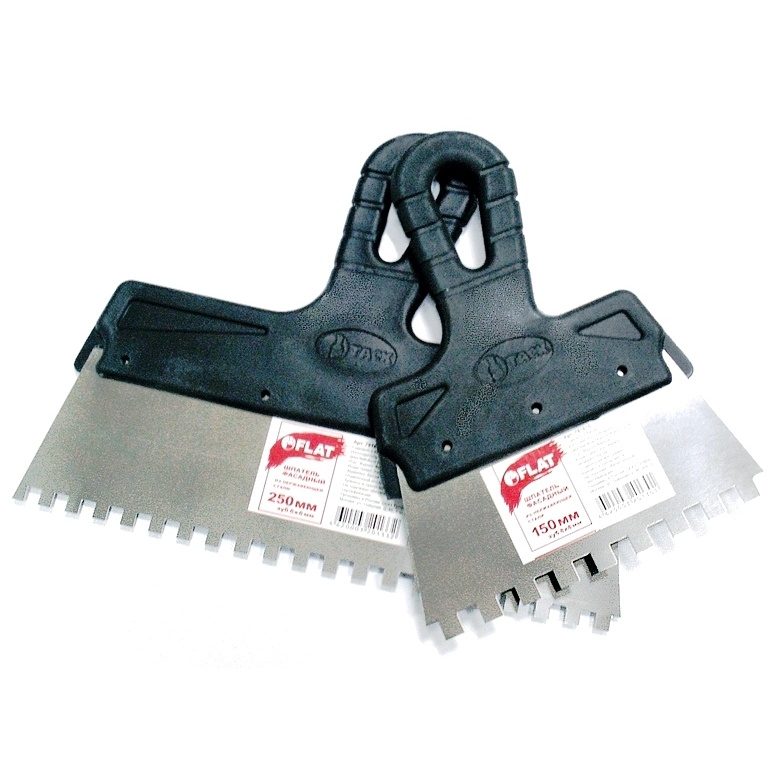 Шпатель Flat имеет повышенную толщину лезвий, что обеспечивает его устойчивость и облегчает разравнивание шпатлевки.