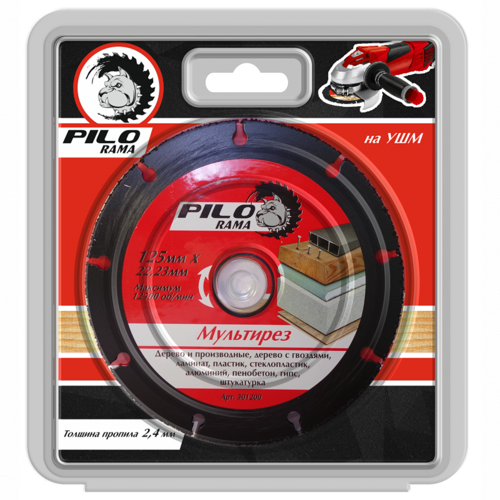 Диск отрезной для УШМ "Мультирез" от торговой марки PILORAMA предназначен для безопасной работы по дереву, ДСП, фанере, ламинату, пластику, алюминию, пенобетону, гипсу, штукатурке.