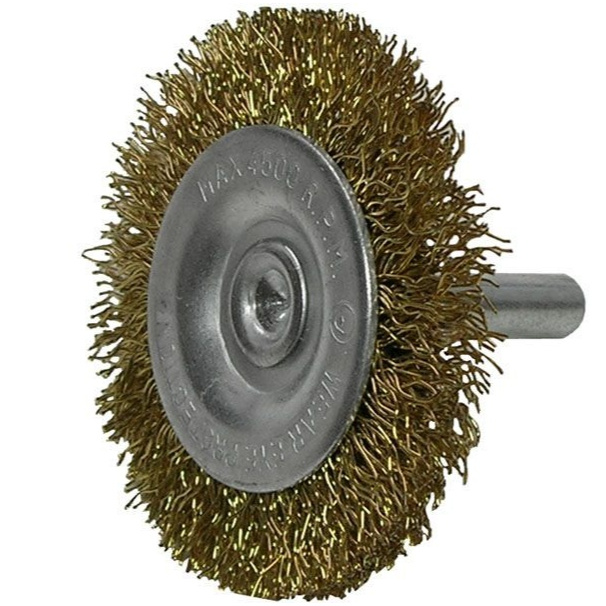 Щетка для дрели 60 мм плоская, тип "колесо" с мягкой латунированной волнистой проволокой