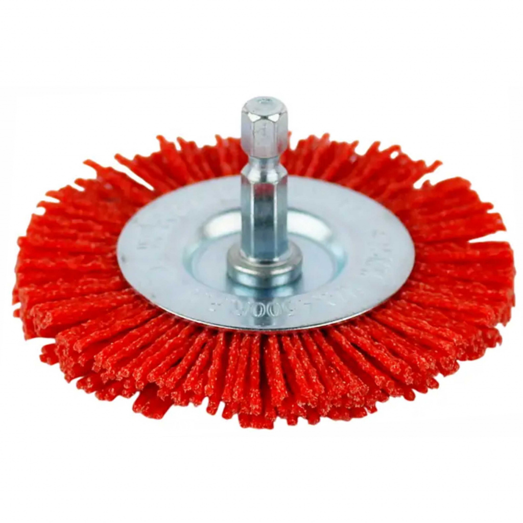 Щетка дисковая для дрели нейлоновая применятся для зачистки поверхностей из металла, пластика, дерева и цветных металлов.