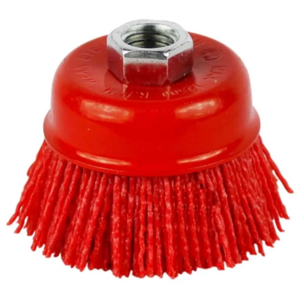 Щетка чашеобразная для УШМ нейлоновая применятся для зачистки поверхностей из металла, пластика, дерева и цветных металлов.