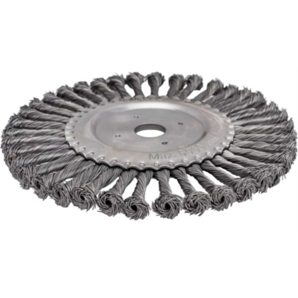 Щетка дисковая "Колесо" для УШМ применяется для выполнения сложных работ на металлических поверхностях средней и большой площади, материал проволоки изготовлен из стальной витой проволоки.