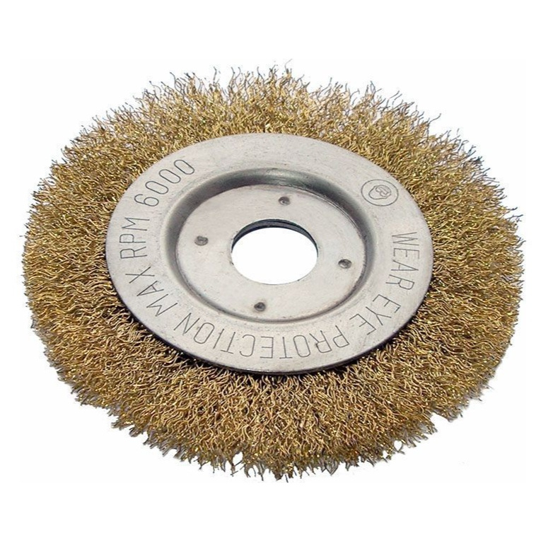 Кордщетка для шлифовальных и отрезных машин плоская (дисковая) тип "Колесо" с мягкой латунированной гофрированной проволокой предназначена для зачистки поверхностей от небольшой коррозии, заусенец.