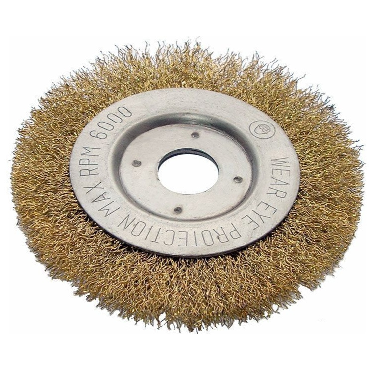 Кордщетка для шлифовальных и отрезных машин плоская (дисковая) тип "Колесо" с мягкой латунированной гофрированной проволокой предназначена для зачистки поверхностей от небольшой коррозии, заусенец.