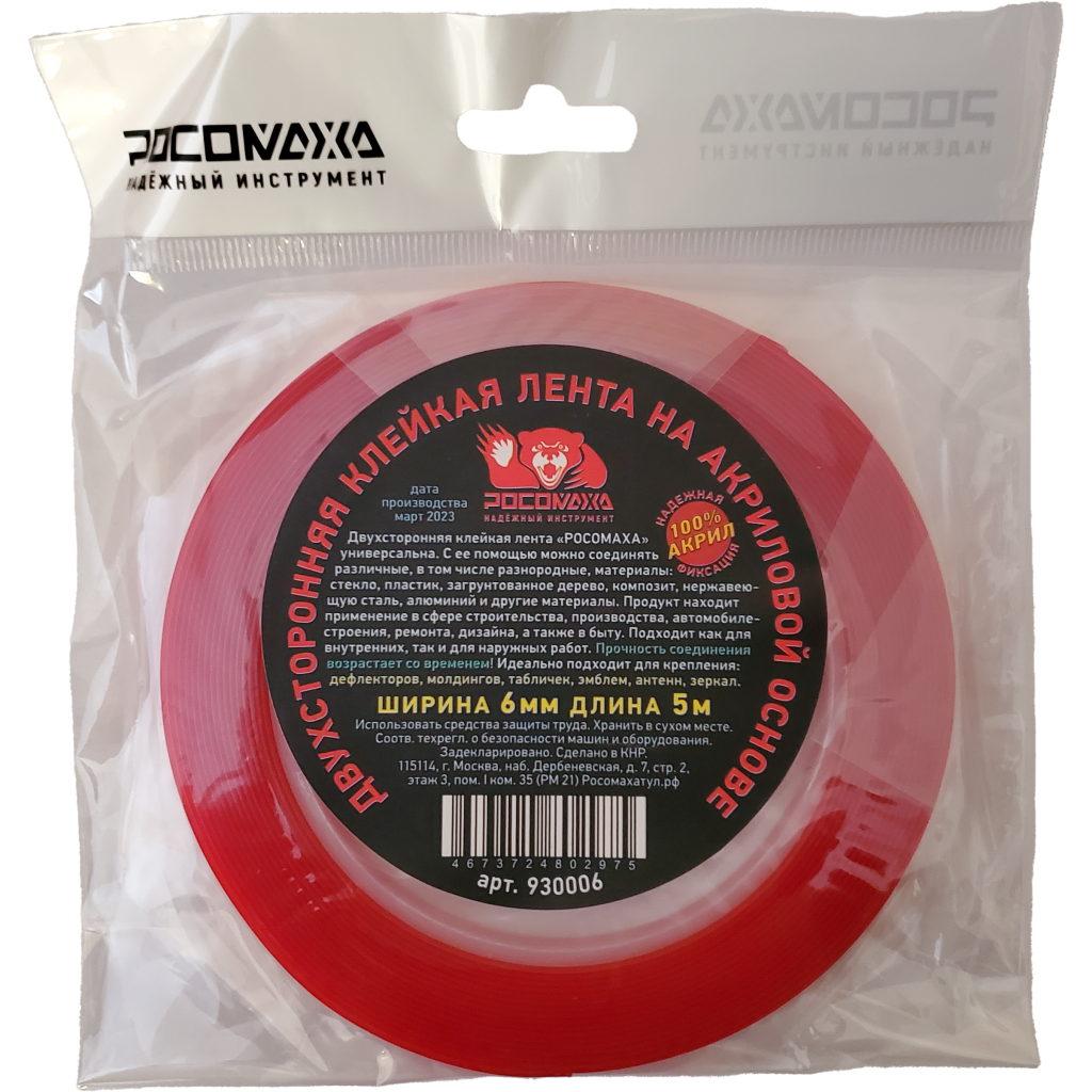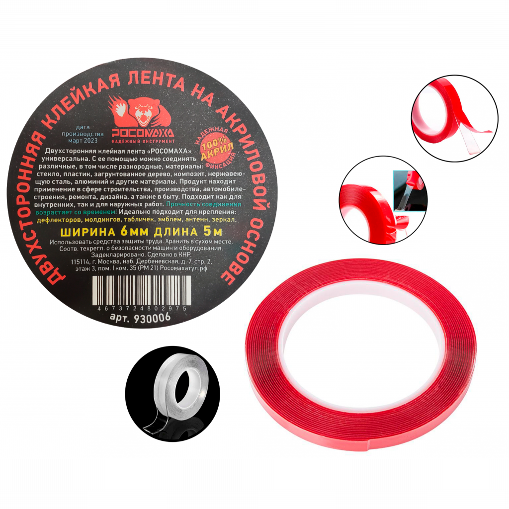 Акриловая двусторонняя монтажная клейкая лента или двухсторонний скотч ТМ РОСОМАХА используется для соединения различных, в том числе разнородных материалов: стекло, пластик, нержавеющая сталь, загрунтованное дерево, композит, алюминий и другие.