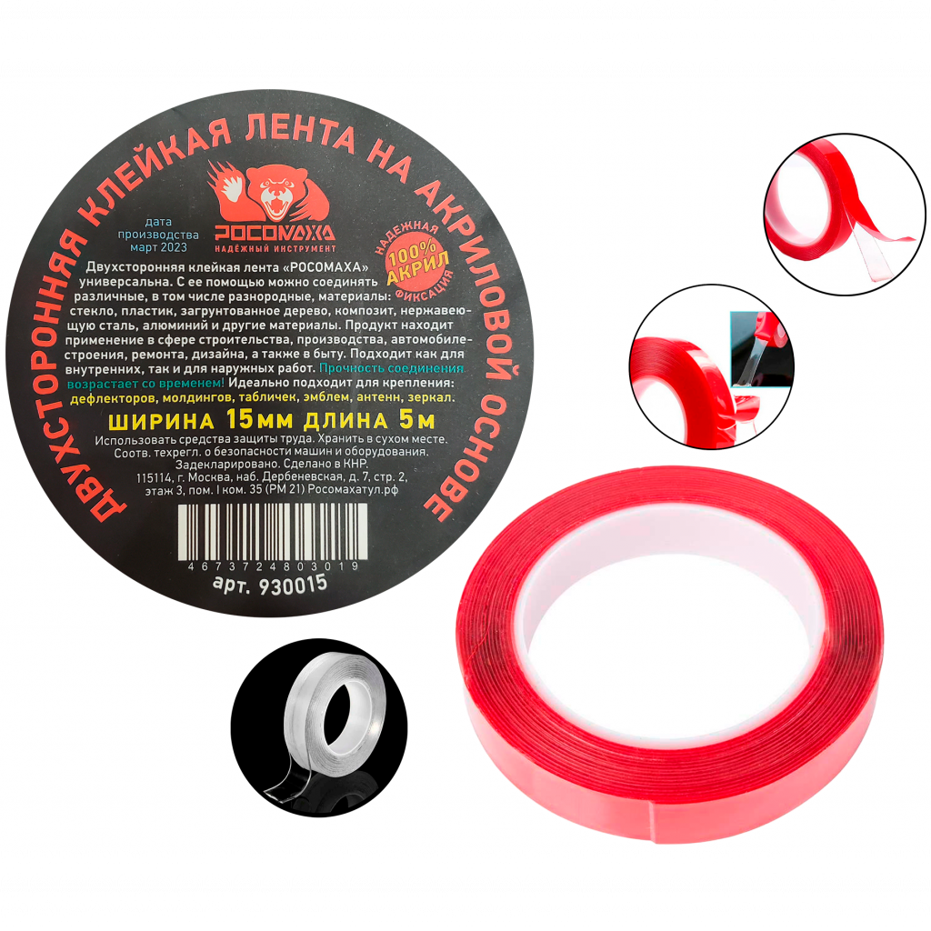 Акриловая двусторонняя монтажная клейкая лента или двухсторонний скотч ТМ РОСОМАХА используется для соединения различных, в том числе разнородных материалов: стекло, пластик, нержавеющая сталь, загрунтованное дерево, композит, алюминий и другие.