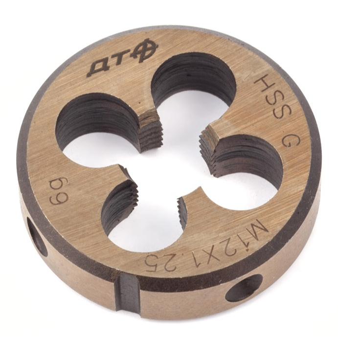 Плашки применяются для создания или калибровки резьбы на винте, болте или шпильке соответствующего диаметра. Плашка крепится в плашкодержатель.